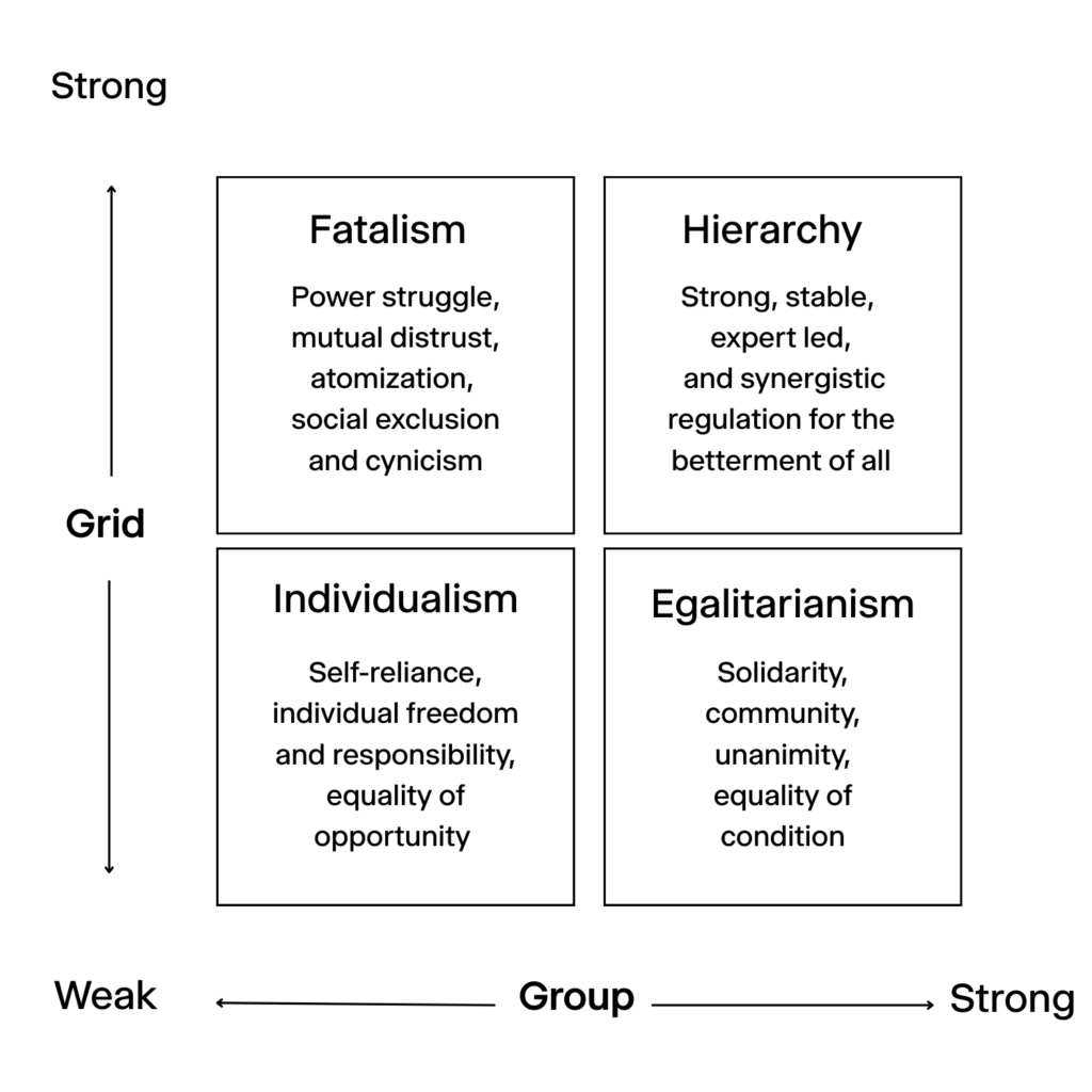 Douglas later formalized this idea into her Grid-Group Theory, a framework that maps societies along two dimensions: